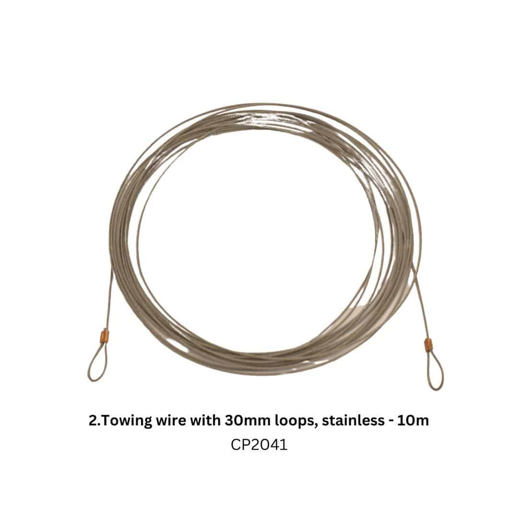 Cougartron CP2041 Towing wire with 30mm loops, stainless - 10m -