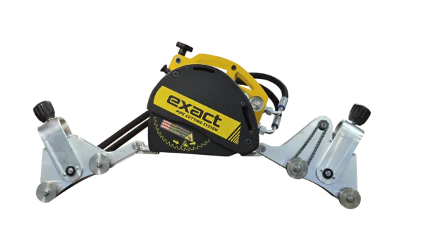 Exact HYDRA Infinity is a new type of pipe cutting system, unlike the other Exact models, it uses a chain type of gripping mechanism. Thanks to the flexibility of the chain segments, it allows you to extend the chain segment gripping unit as much as you like.