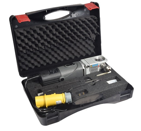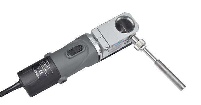 The MasterPoint Handy is a portable tungsten electrode grinder, that is both environmentally friendly and has the ability to repeatably grind quality points on tungsten electrodes.It is equipped with an integrated, replaceable dust filter, protecting the operator and the environment against the potentially harmful dust produced during electrode grinding.