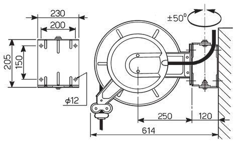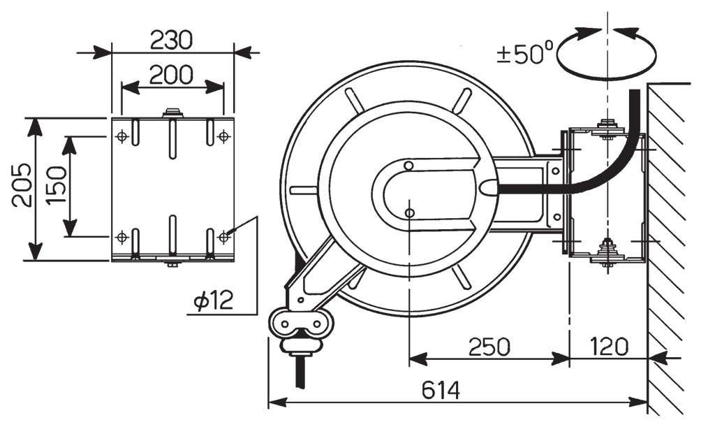 - The open structure allows an easy assembly and replacement of the hose and the control of the rewinding