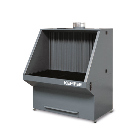 Our grinding table with downdraft and rear wall spark and air fume extraction is a clean and safe solution for industrial use. The grinding table can be connected to a central air extraction system and the table is available in different sizes. The sound-insulated side walls can be folded away when machining large workpieces.