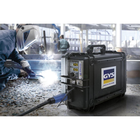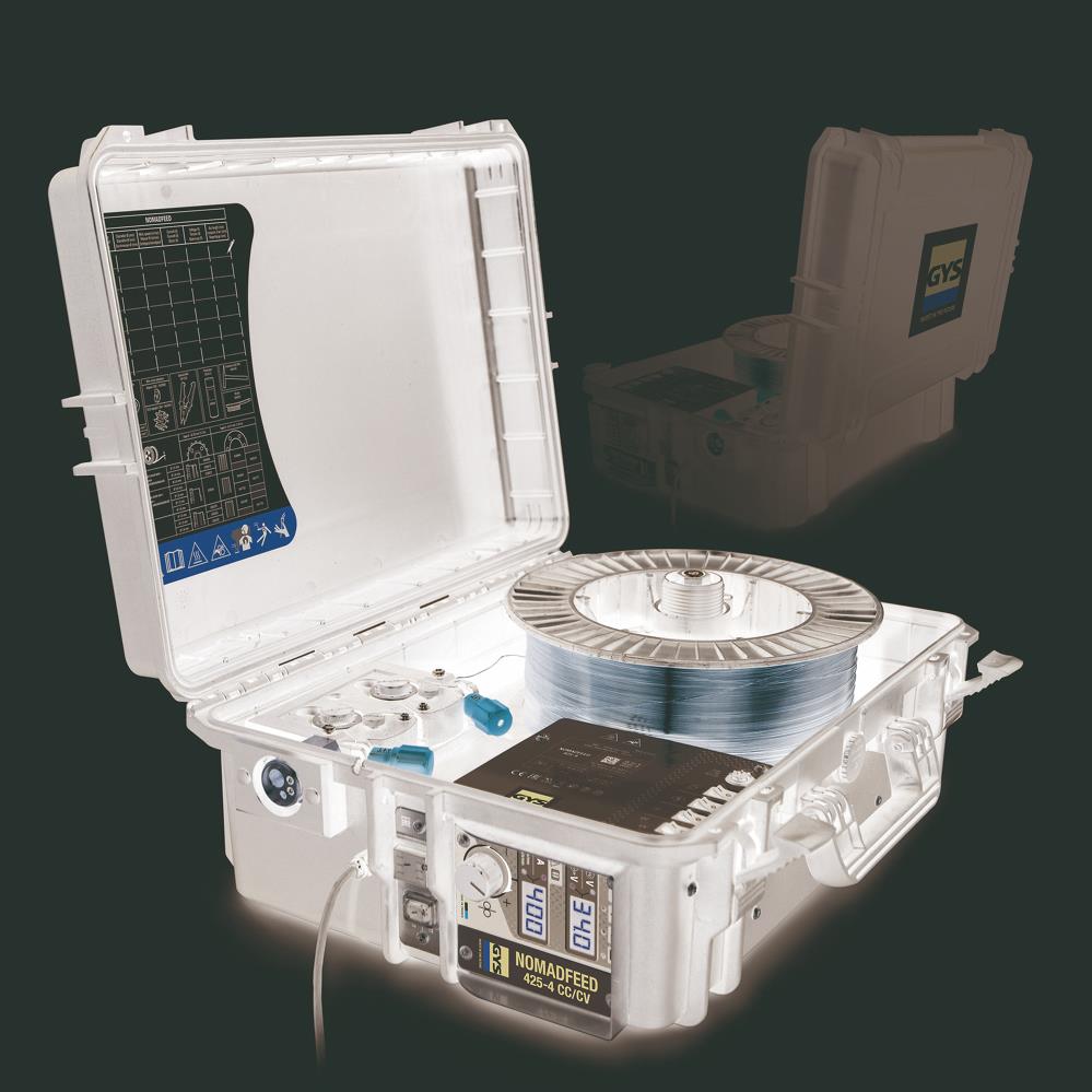 The GYS NOMADFEED 425-4 is a suitcase wire feeder ideal for running the MIG welding process from a stick welding power source. The wire feed motor takes its power directly from the welding circuit and will run from most welder generators on the market. Its 4 roll wire drive ensures reliable wire feeding of thin and soft wires from 5 or 15KG spool sizes.