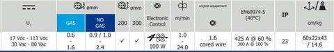 - Approx. welding amps range on 1.0mm solid wire (CC 100-250 Amps) (CV 50-250 Amps)
