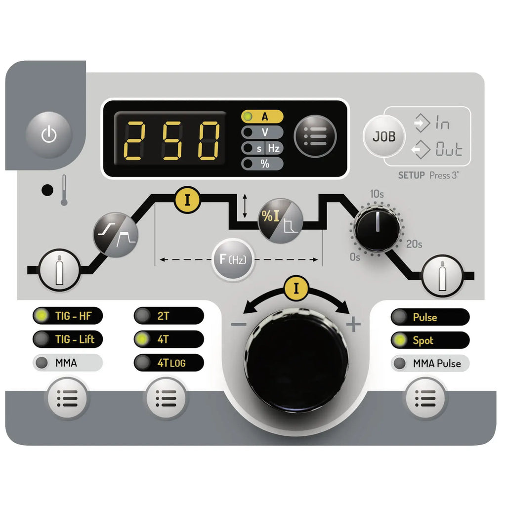 The PROTIG 250 DC TRI is a 250 A three-phase TIG and MMA industrial power source with IP23 protection to withstand the harshest operating conditions. Ideal for welding on mild and stainless steels, it provides excellent starting quality and a very stable arc. Its power guarantees exceptional results even when joining materials of different thicknesses. Lightweight, compact and extremely robust, it's the ideal companion on the worksite. DC Standard: smooth current welding on most ferrous materials.