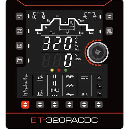 Built for multi-process flexibility, the EVO TIG 320P also supports MMA (stick welding) with advanced features like Hot Start, Anti-Stick, and Arc Force Control.