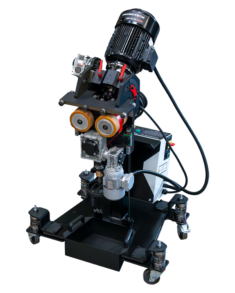 ABM-50 DD Vario is the self-propelled bevelling machine that produces high-quality bevels up to 50 mm wide without thermal distortion or the creation of heat heat-affected zone on the top edge of plates from 8 mm to 80 mm thick. Adjustment of spindle speed and feed rate, together with a load level LED monitoring system, helps to optimise cutting conditions depending on the grade of material, including stainless steel, duplex, alloys, Hardox and many others. The ABM-50 DD Vario allows continuous adjustment of the bevel angle over a wide range from 15 to 70 degrees. If you're only bevelling carbon steel, you can opt for the basic ABM-50 DD model with a fixed spindle speed.