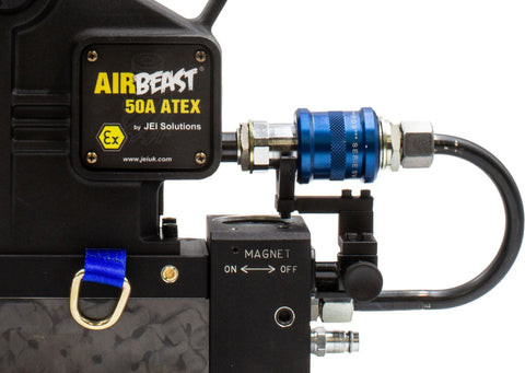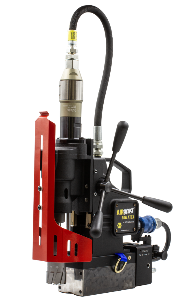 The AirBeast® 50A is ideal for hazardous environments such as oil drilling platforms, mining, shipbuilding, and petrochemical industries. A pneumatic drive and permanent magnetic base eliminate the need for electric power.