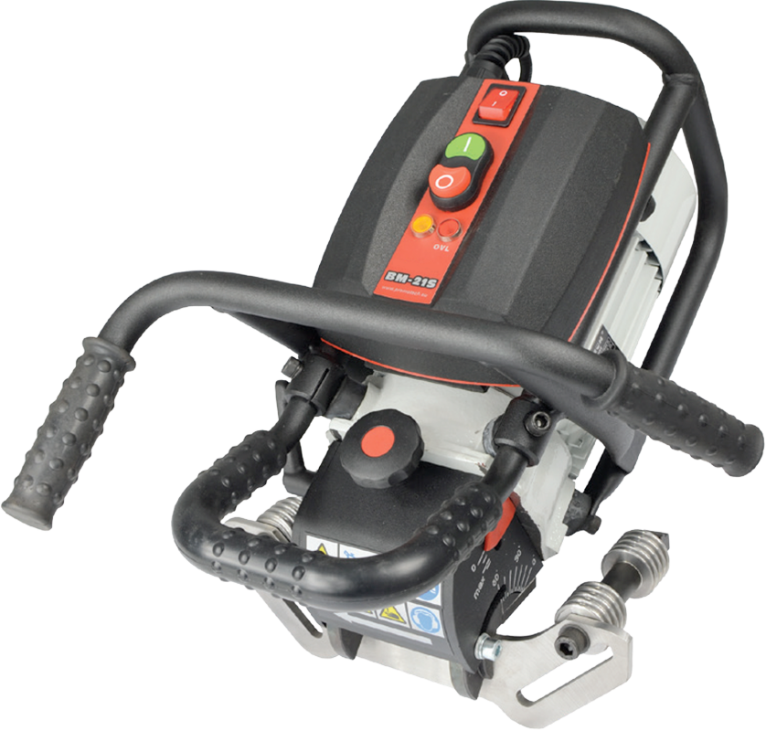 BM21-S is designed for bevelling edges of plates and pipes made of stainless steels. Its impressive features include a low-speed motor suitable for machining stainless steel and guide plate with guide rolls made of stainless steel. Unlike flame or plasma cut weld preparation, BM21-S produces no heat-affected zone or distortion of the workpiece.