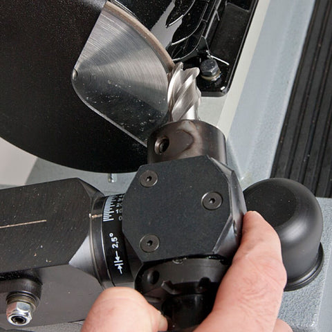For use with JEI Turbo Steel or other Brands of HSS annular cutters, with a 19 mm Shank. Will regrind cutters from 12 mm diameter to 50 mm diameter in cutting depths of 1” (25 mm) and 2” (50 mm).