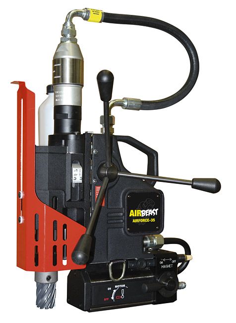 - Pneumatic drive and permanent magnetic base eliminates the need for electric power.