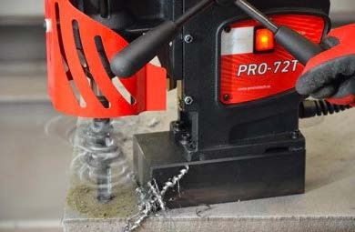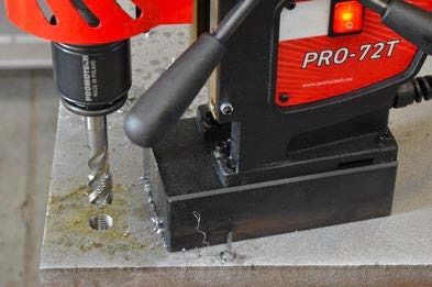 The PRO-72T drilling machine is suitable for hole cutting and tapping applications. Powerful 1600 W variable speed motor enables milling capacity up to 70mm (2-3/4”) and drilling capacity up to 25 mm (1”).
