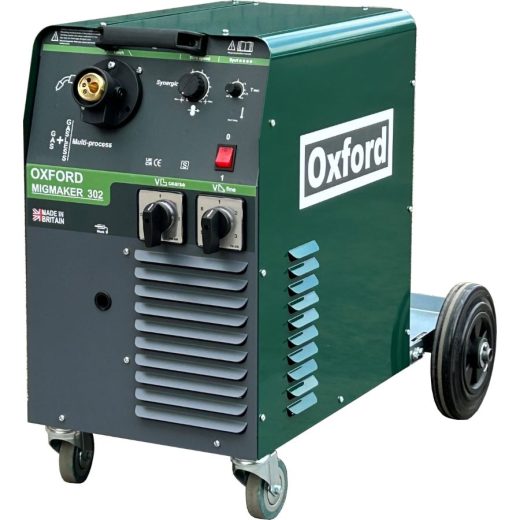 The Oxford MIGMAKER 302 is a single phase 300A step regulated MIG welder made by British welding machine manufacturer Oxford. Updated for 2025, the MIGMaker 302 still offers the same robust British built build quality as before, but now has a more electrically efficient transformer to comply with latest regulations. Reverse polarity now comes with these machines as standard meaning gasless wire can be used if required. Spot Timer now also included FOC.