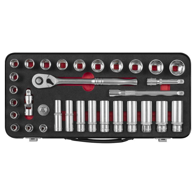 • 32PC SET- Covers sizes from 6 to 24mm including deep and standard size sockets.