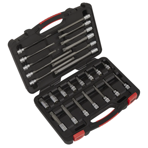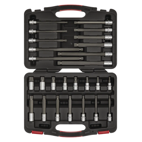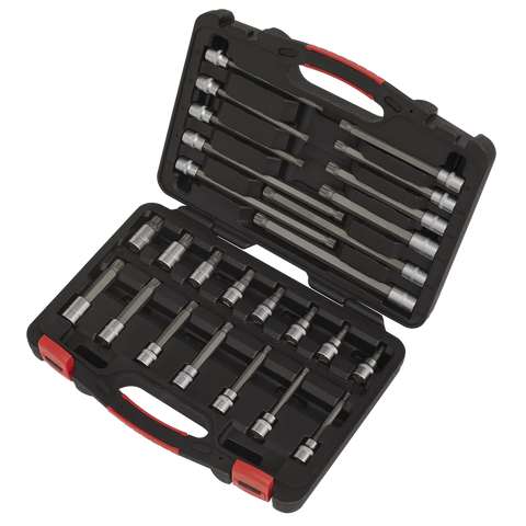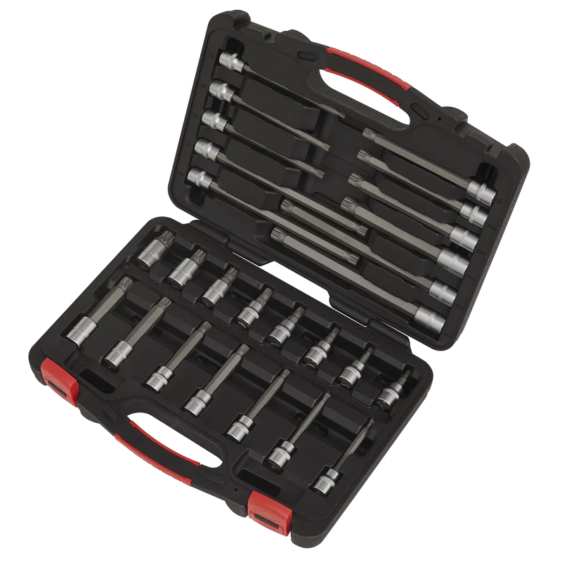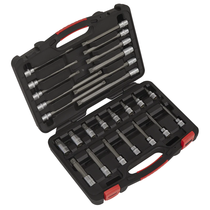 3/8"Sq Drive Spline Socket Bits; Length 48mm - M5, M6, M8, M9, M10, M12, M14, M16, Length 93mm - M5, M6, M8, M9, M10, M12, M14, Length 140mm - M5, M6, M8, M9, M10, M12, M14, Length 200mm - M8, M10, M12, M14