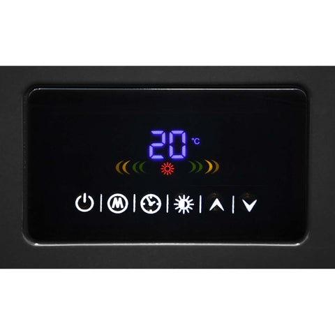 Tripod mounted, powder coated metal construction. Adjustable thermostat control (15°C 45°C). Soft-touch control panel with LED display. Programmable 7-day timer function. Equipped with a tilt cutout switch for added safety. Two ceramic heating elements provide instant heat when required. Polished reflectors maximize heat emission. Supplied with 2m cable fitted with 3-pin plug. Foldable legs for easy storage.