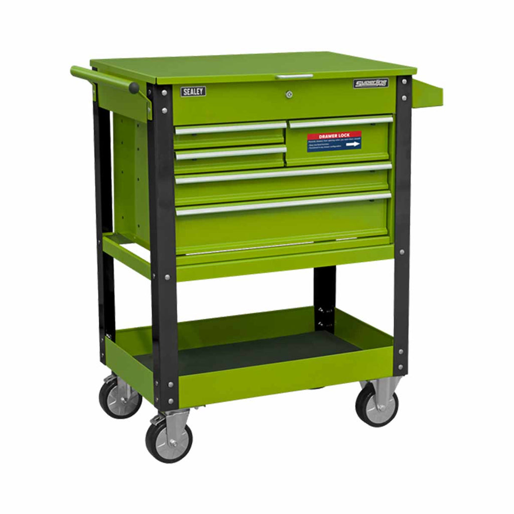 Sealey Heavy-Duty Mobile Tool & Parts Trolley with 5 Drawers & Lockable Top in Red or Green