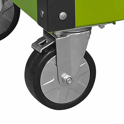 - Fitted with a side handle, two fixed castors and two swivel castors with toe brakes to aid manoeuvrability around the workshop or garage.