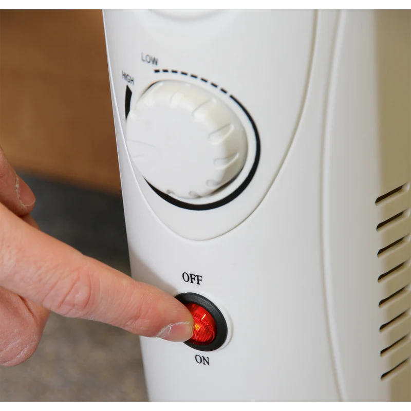 Oil-filled radiator suitable for office, home, showroom and workshop use. Manufactured to rigorous standards and fitted with a safety tip-over switch. Features full thermostatic heat control that cuts power to the heater elements when preset temperature is attained. Elements designed to maximize area of the heated surface in order to transfer more heat to the atmosphere. Fitted with hard-wearing feet to allow for maximum stability.