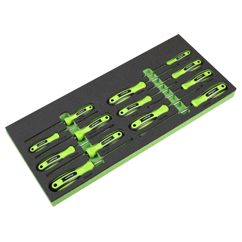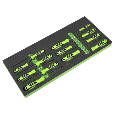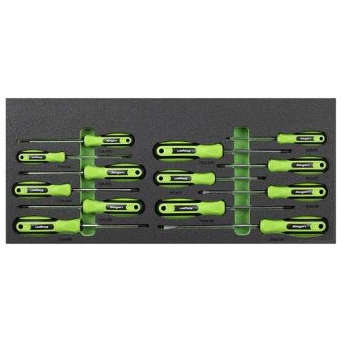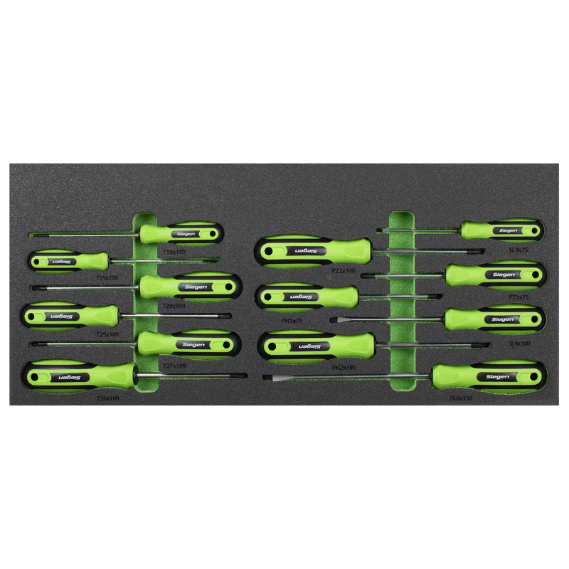 | Drawer 1: | Screwdrivers; Slotted - 3 x 75, 4 x 100, 6 x 150, Phillips - #1 x 75, #2 x 100, Pozi - #1 x 75, #2 x 100, TRX-Star* - T10 x 100, T15 x 100, T20 x 100, T25 x 100, T27 x 100, T30 x 100 |