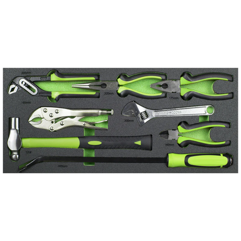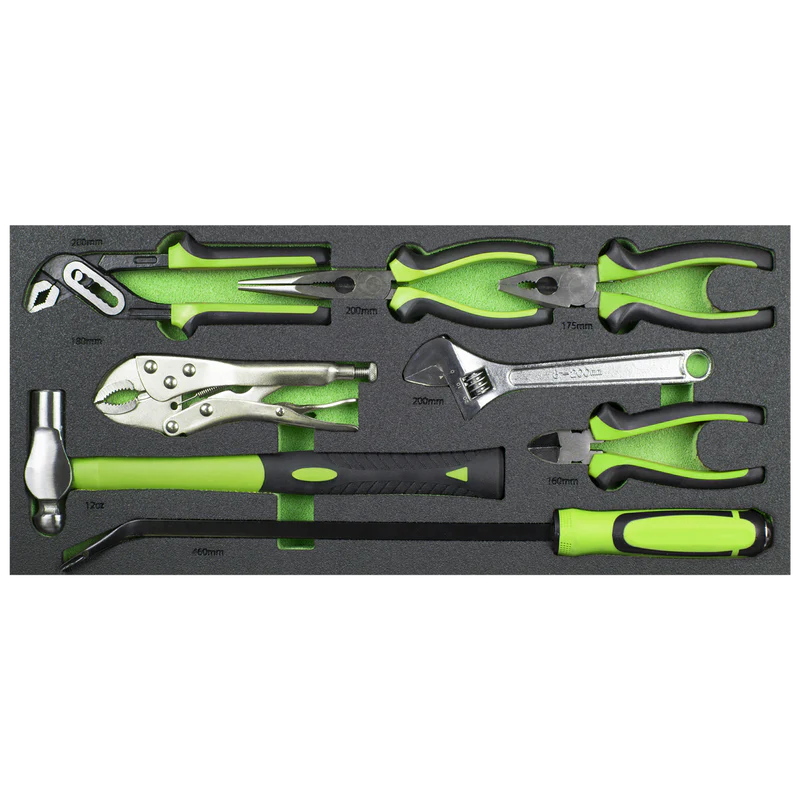 | Drawer 4: | 200mm Adjustable Wrench, 200mm Water Pump Pliers, 200mm Long Nose Pliers, 175mm Combination Pliers, 160mm Side Cutters, 180mm Locking Pliers, 12oz Ball Pein Hammer, 460mm Pry Bar |