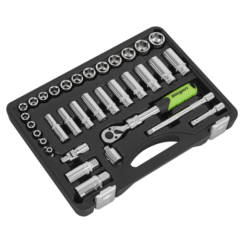 Sealey S01287 Siegen Extendable Ratchet Socket Set 3/8"Sq Drive 34pc