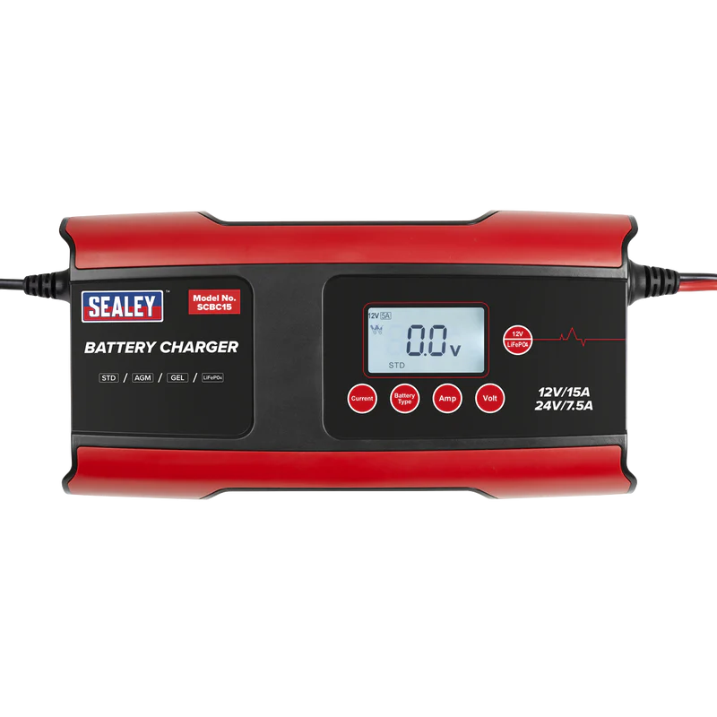 Sealey SCBC15 12/24V Compact Smart Battery Charger & Maintainer 15A