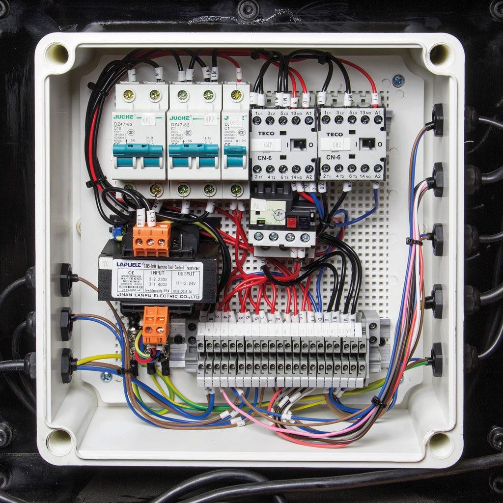 - A low voltage (24v) control circuit minimises electric shock which limits harm to machine operators.