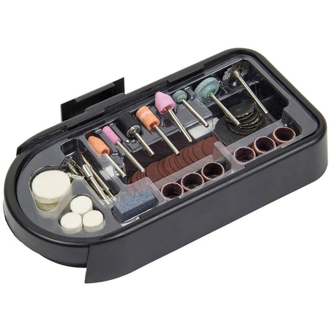 The SIP 16" Flexi-Drive Scroll Saw is designed with a robust 0° to 45° aluminium tilting table with positionable work light to accommodate a variety of different workpieces. A comprehensive 64pc kit provides varied grinding, polishing, and sanding accessories.