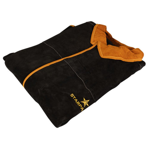 The Starparts Black Premium Leather Jacket – is a durable and stylish protective garment designed for serious welders and metalworkers. Crafted from high-quality, premium-grade split cowhide leather, this jacket offers exceptional resistance to heat, sparks, and abrasion—ensuring both safety and comfort in demanding work environments.