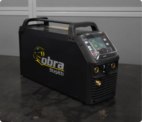The Cobra by Stealth TIG 200P LCD features an intuitive LCD screen, providing precise setting adjustments and real-time feedback on welding output for enhanced accuracy and control.