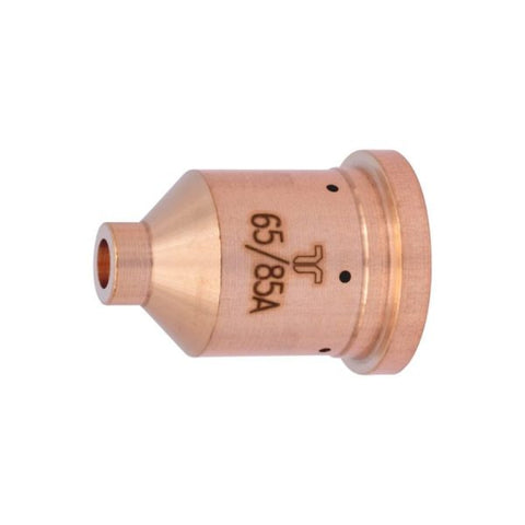 5 genuine Thermacut gouging nozzles for the FHT EX plasma cutter torch. These torches are supplied with Thermacut Ex-Trafire plasma cutters machine. With the Thermacut Ex-Trafire plasma cutters, you can easily perform plasma gouging by swapping the nozzle and shield for a gouging type. This process provides a safe and efficient way to remove material without using oxy-fuel gases. The powerful plasma arc quickly removes weld material, making it ideal for cutting, repairing, and disassembly tasks.